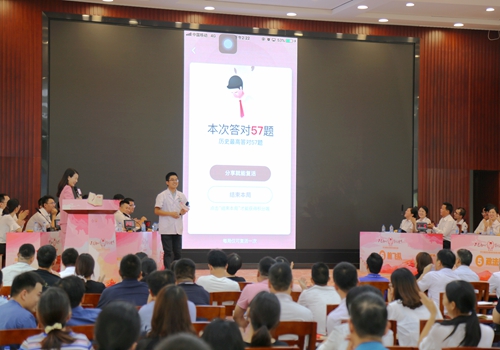 决赛设有必答题、抢答题、风险题、一站到底四个环节,题目主要以学习强国知识竞赛题库学习资料为主,并辅之以市情镇情。此外,现场还增设线上挑战答题等环节。必答题环节,各队稳扎稳打,胸有成竹;抢答环节,各队争分夺秒,你追我赶;风险题环节,各队斗智斗勇,共破难关;一站到底环节,各队绷紧神经,步步为营。其中,锦溪人民医院党总支部的一位“学霸”连答57题,成为全场的“明星”。